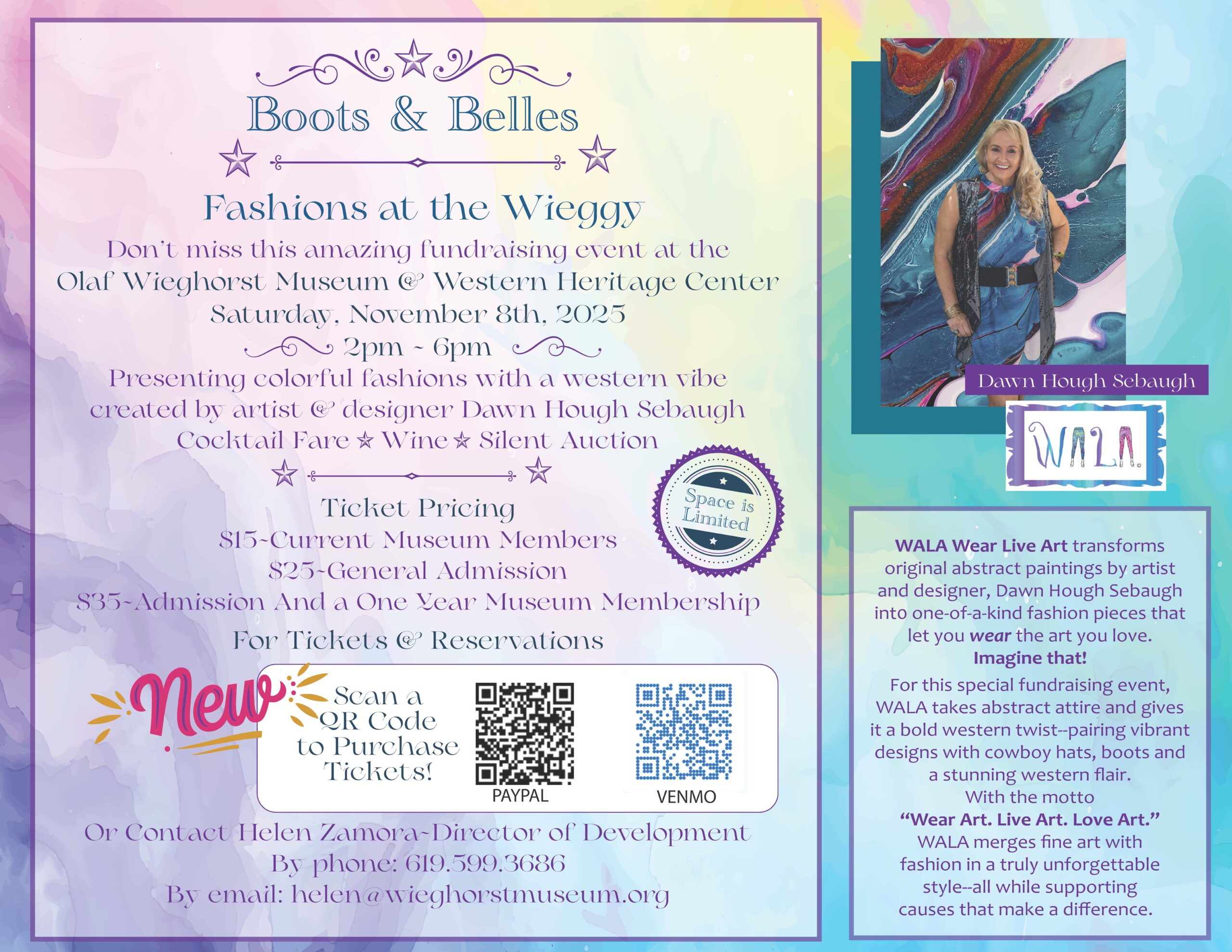 Boots & Belles and Wear Live Art (WALA) bring fashion and art together, showcasing clothing and accessories with a western flair.